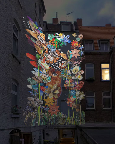 sinnlich-aussergewöhnlichen Spaziergang durch ihre Installation ein. Kommt mit durch das wuchernde Biotop aus Skulptur, Klang, Kollagen und bewegtem Bild.